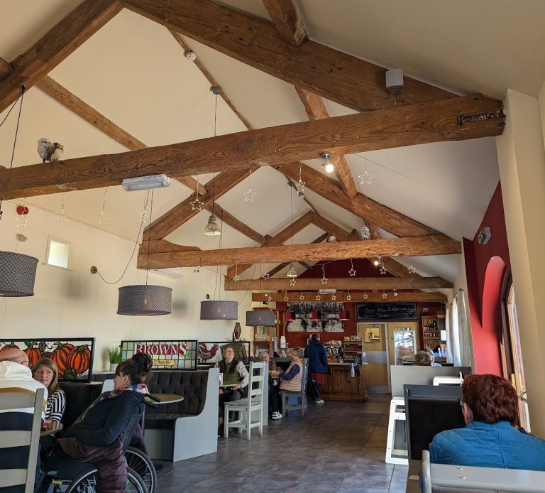 We have a farm shop and cafe next door with indoor and outdoor seating featuring locally sourced produce.